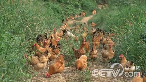 李学财:你看我们这个鸡都是养在森林里面,在草丛当中,在芦苇丛当中,这里还有天然的山泉水喝,你看我们的天是蓝的,树是绿的,我们的工人说这是给鸡盖的别墅。